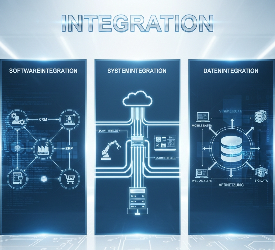 Wir organisieren die Interaktion (Zusammenführung, einseitiger und mehrseitiger Datenaustausch) von Software- oder Software-Hardware-Systemen.